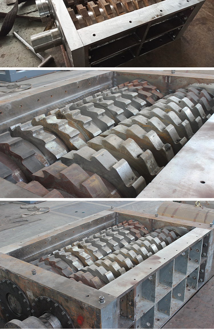 撕碎机刀箱用于破碎塑料、橡胶、纤维、纸张、木材、大型中空物料(塑料桶等大型容器)和各种混合废料特别是含有金属的废料,或者是预碎含有泥沙等容易磨损刀具的废料。比如:成卷薄膜、编织袋、电视机、冰箱売、木头、轿车和中型汽车轮胎及中空桶类、追网、硬纸板、电路板等。刀具的厚度和刀爪数量可根据不同物料更换。破碎中空物料时可配备压料装置提高产量。另可添加旋转筛网控制出料尺寸。